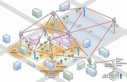 To create a “wireless mesh” we install several pieces of hardware that talk to each other and serve to create a zone. They mesh with each other, meaning that as you walk through the zone, your smart phone or computer will pick up the signal from whatever hardware you are closest to without disconnecting.